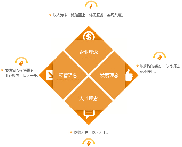 回報社會、構(gòu)筑和諧。服務(wù)人民大眾,振興民族經(jīng)濟;質(zhì)量是企業(yè)的生命;顧客是完美的衣食父母;遵守國家法律,弘揚法制精神,伸張社會正義,爭做守法公民;爭創(chuàng)效益,回報社會;以人為本,以才興企,廣納賢才。