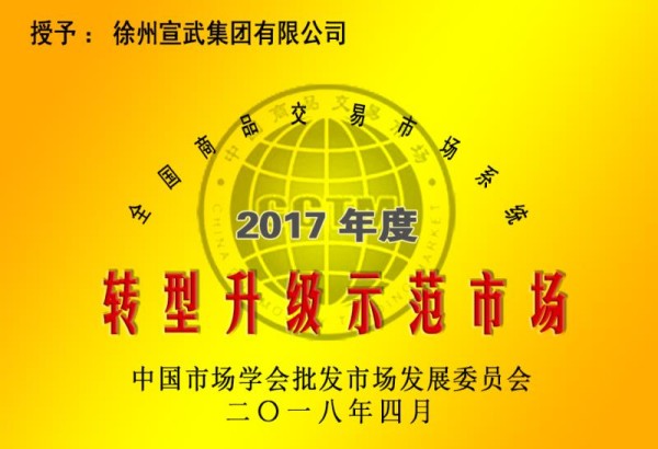 4月24日,公司被中國市場學會批發(fā)市場發(fā)展委員會授予2017年度全國商品交易市場系統(tǒng)轉型升級示范市場稱號。黨委書記、董事長、總經(jīng)理李旭昇獲2017年度全國商品交易市場系統(tǒng)功勛人物稱號。公司轉型升級經(jīng)驗,在全國予以推廣。